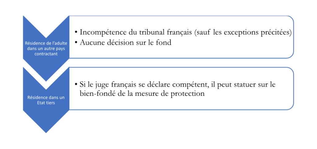 Le droit commun n’a plus vocation à intervenir, sauf dans les cas résiduels où la Convention ne s’applique pas, notamment lorsque la résidence habituelle de l’adulte est située dans un État non-partie à la Convention.